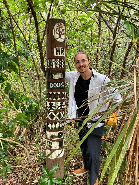 As they moved down the race, they also had a chance to explore some of the property. Rowan had visited CUE Haven in 2015 when his brother, Howard, had been a participant in a Duke of Edinburgh Hillary Award residential at CUE Haven. The pole the DOEHA team had carved in 2015 was sited on open grassland and Rowan had a challenge finding it a decade later amongst the growing trees.