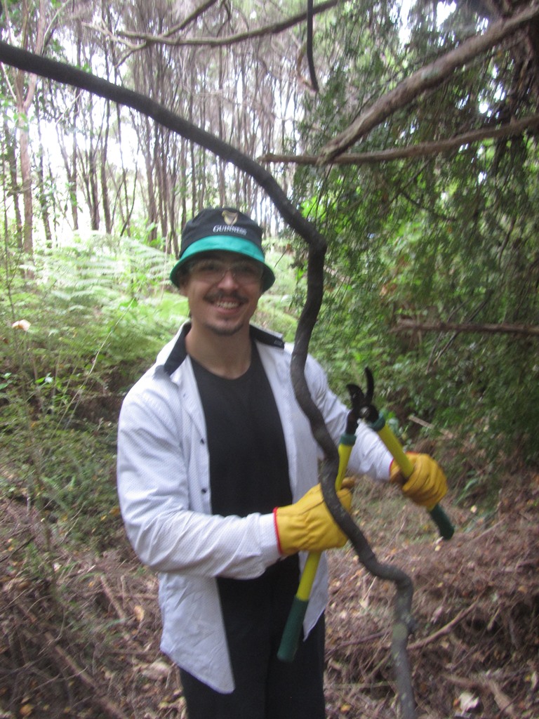 The team continued down the track, searching out and cutting away as much of the vine as they could.