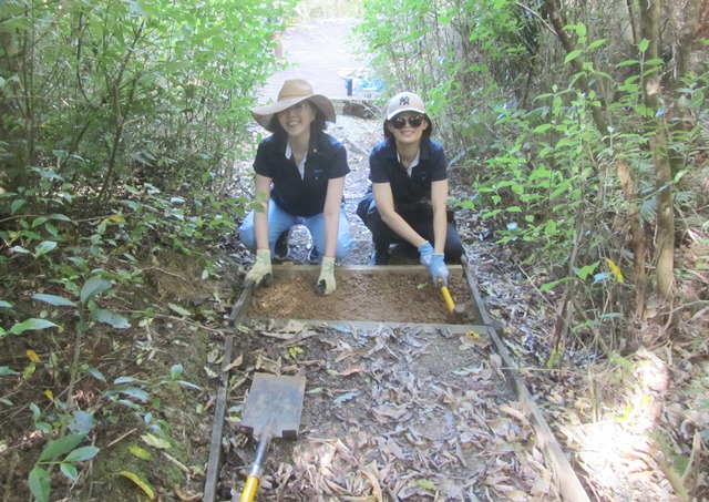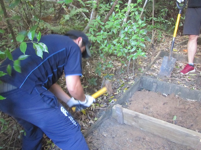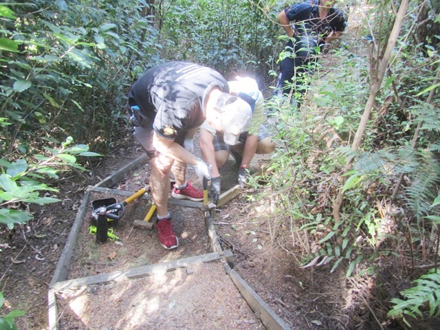 There were other areas where the team determined that the track could be improved by installing a new step. They dug out the new step, measured the timber needed and cut it to size.