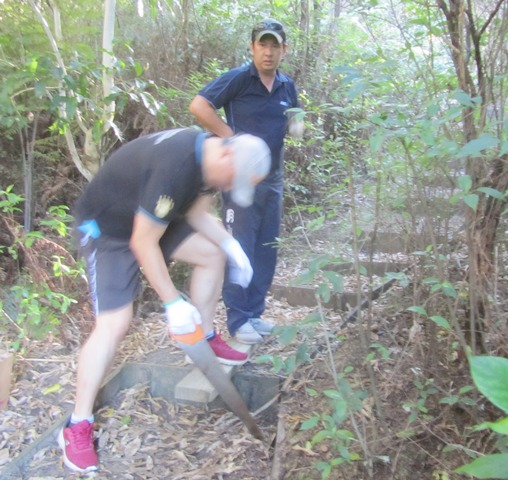 We got to the start of the walking track and the trimming team went to work, cutting back branches that had grown out onto the track.