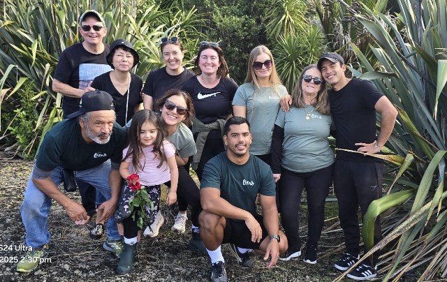 Once at the top, the group visited the viewing platform and Vanessa stopped to visit the puriri tree she’d planted when her daughter Emi was born.