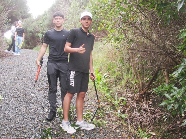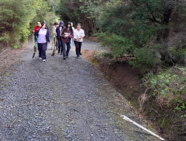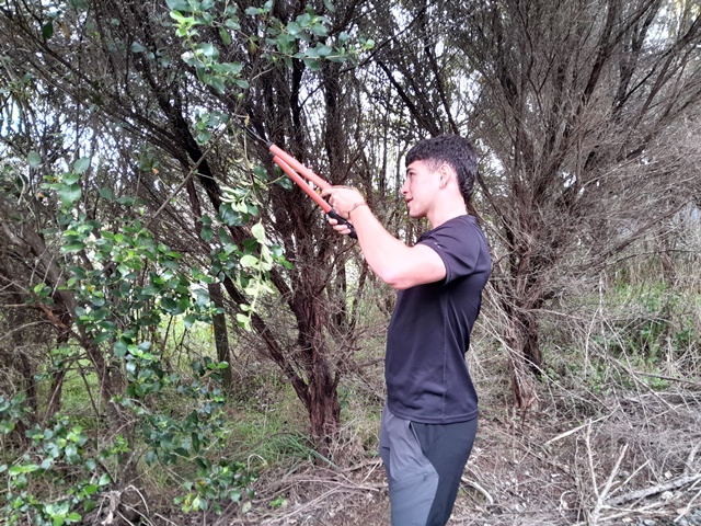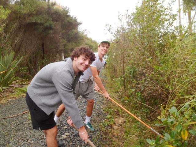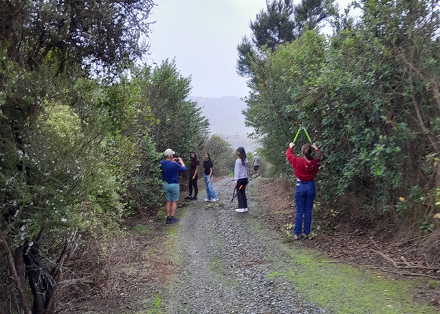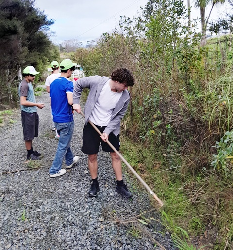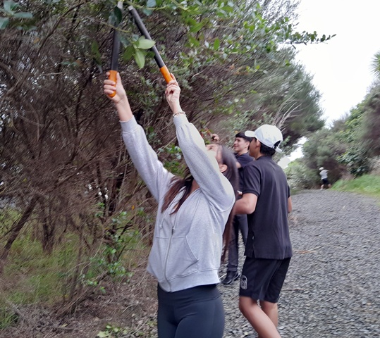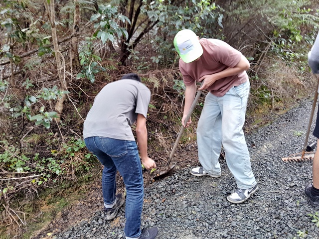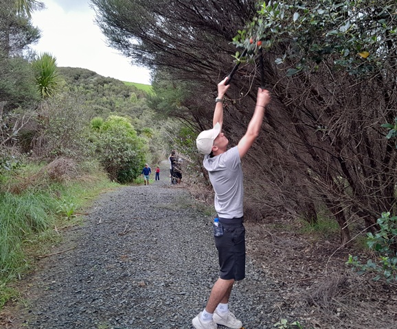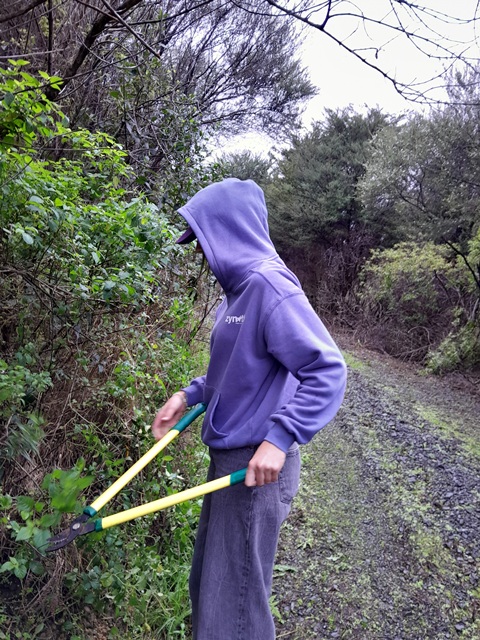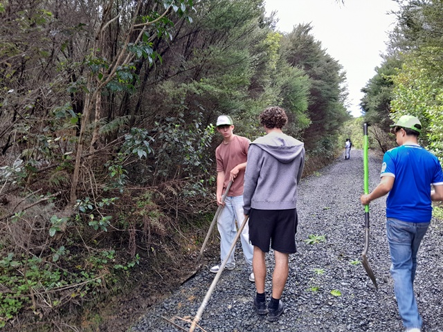 Thanks to the efforts of both these teams, within a couple of hours they made major progress and trimmed back most of the overhanging vegetation along Huarahi Kowhai, the main road, and some of the service roads at CUE Haven.