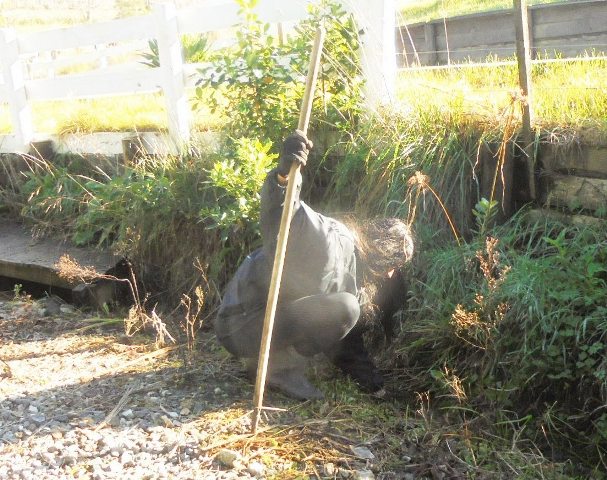 By lunchtime, the team managed to clear a long section of the steepest part of the main race and that will be a huge help in ensuring the drains continue to function in heavy rains. Thanks!