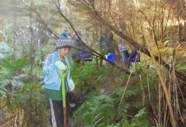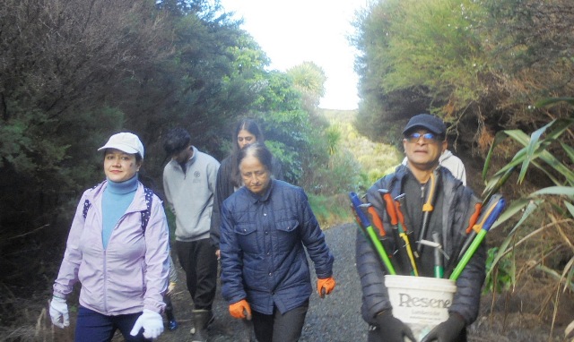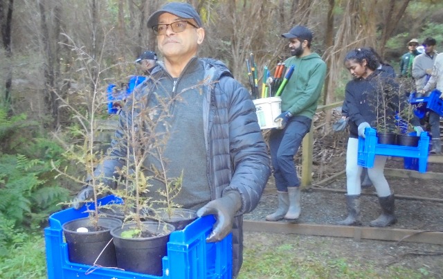 The Sri Sathya Sai group is a spiritual organisation whose members make a commitment to fostering peace and community service. The group have made many contributions to the CUE Haven restoration project over the years—assisting with planting trees, painting the nursery and walking track maintenance. Today nineteen members gave up their Sunday morning to help us with some restoration planting.