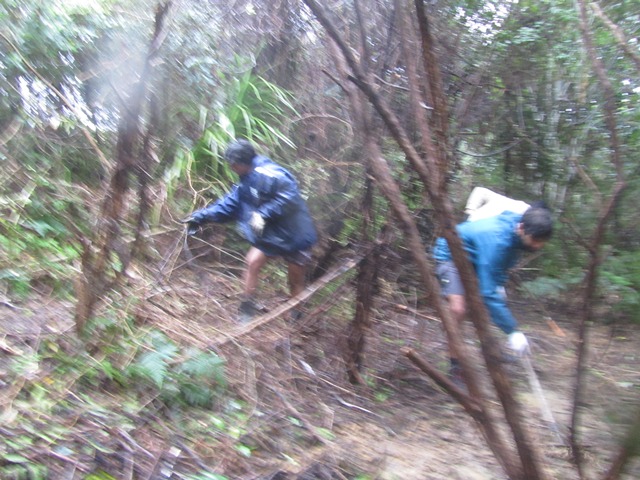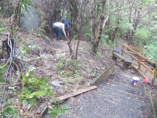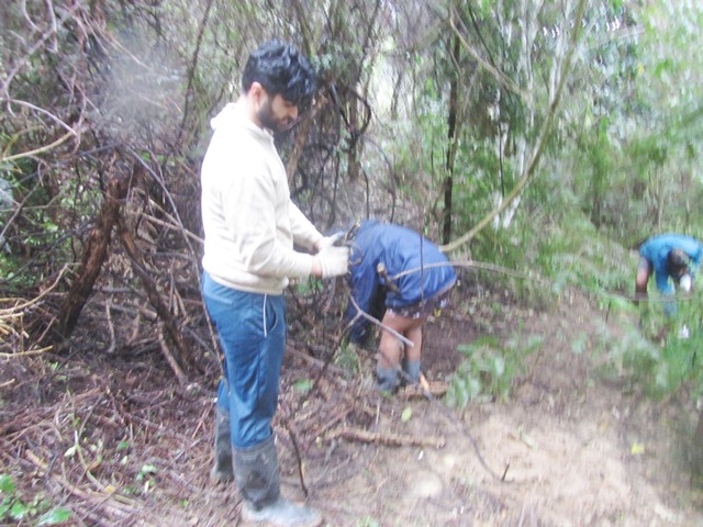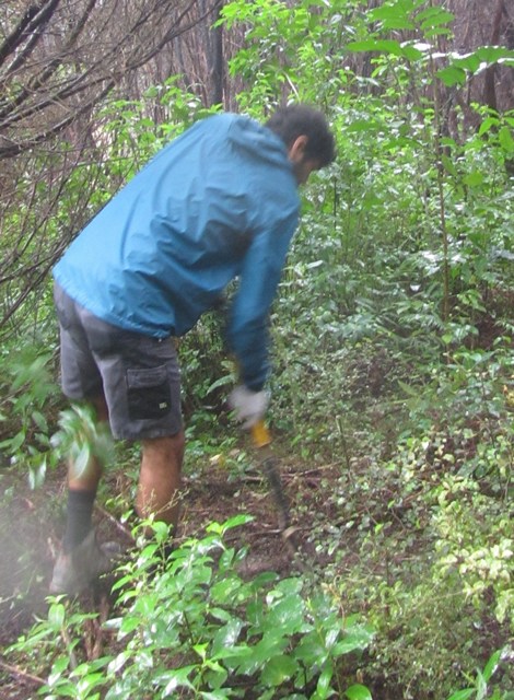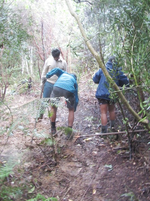 One they agreed on the route of the new track section, they went to work with loppers, spades and rakes to clear the track.