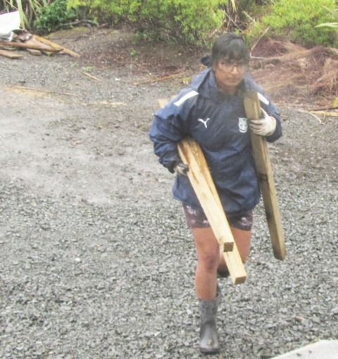 It was a wet and messy job but in a couple of hours the team managed to clear the car park of timber and get it all into the shed where it will be dry and out of the way.