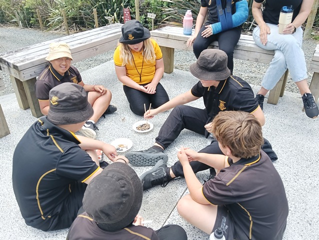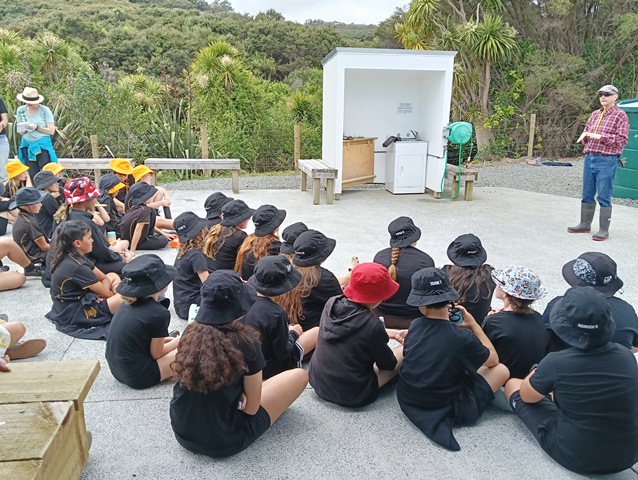 At Wahi Maturanga Thomas gave a brief talk about pest control. He explained the different introduced pests that threaten native New Zealand plants and animals and described pest control activities at CUE Haven.