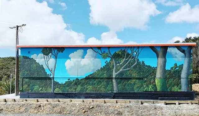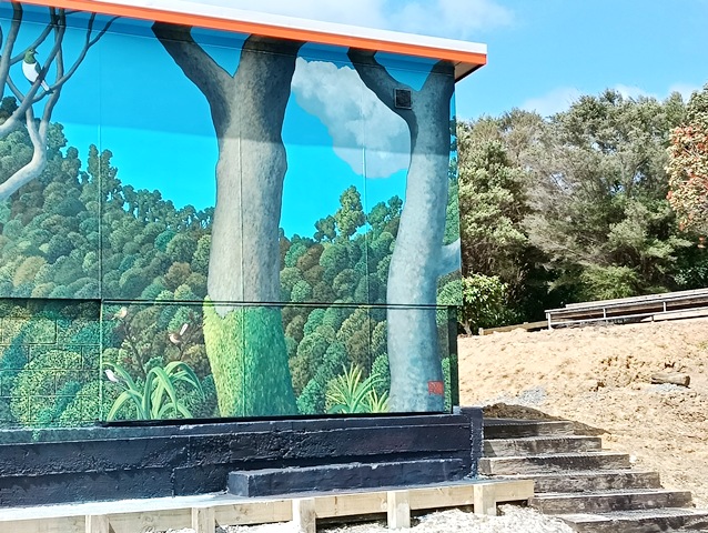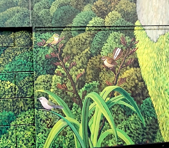 The west wall depicts a lush native NZ forest blending into the regenerating forest in the background.