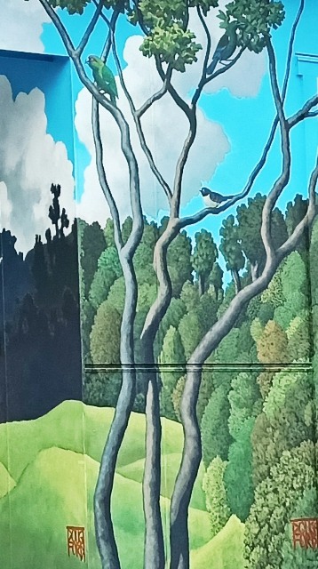 In addition to the bush views, there are a number of native birds incorporated into the mural.