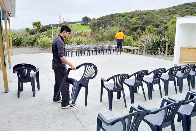 Our thanks to Xerxes and Richard for assisting Thomas in cleaning up and setting out the chairs for the manuhiri and tangata whenua before everyone arrived.