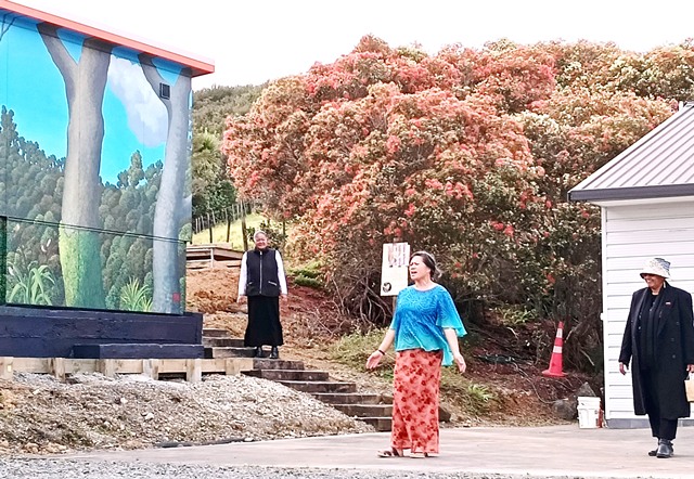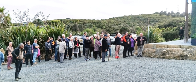 The group then reassembled in the upper car park and Marion and Rita gave the karanga to invite everyone inside the shed.