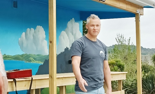 Kaumatua Richard gave the final speech thanking the CUE Haven trustees, builders, artists and all the wonderful people and organisations that helped on the shed renovation project. He reminded everyone of the importance of community working together and, also thanked all the people who have over the years helped with the restoration of CUE Haven to create this special place for everyone to enjoy.