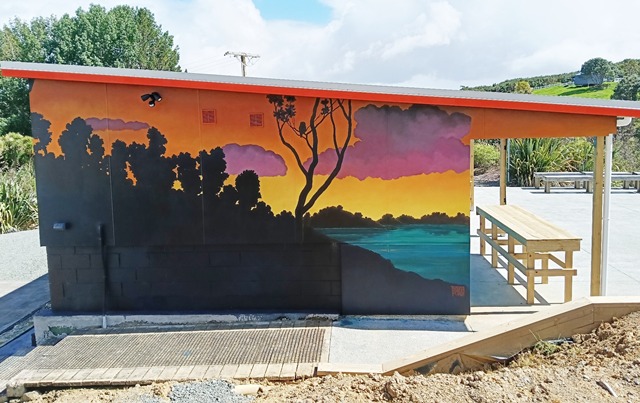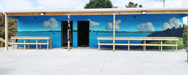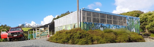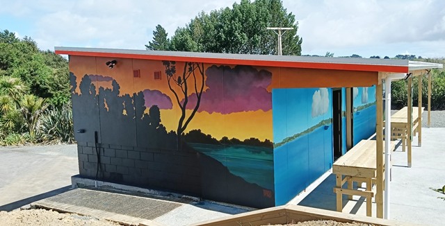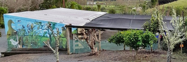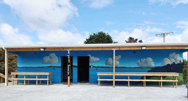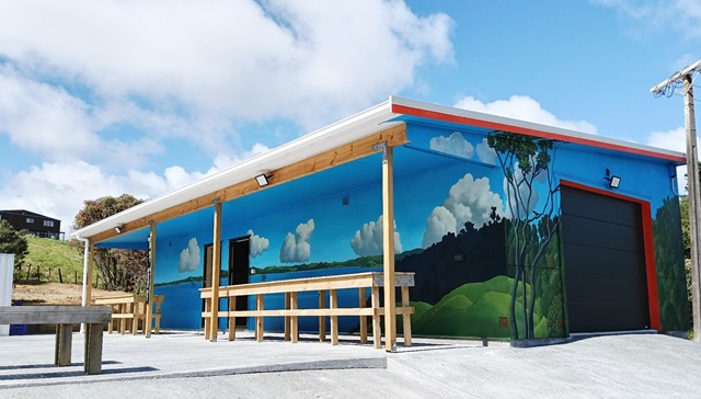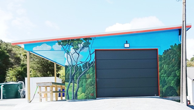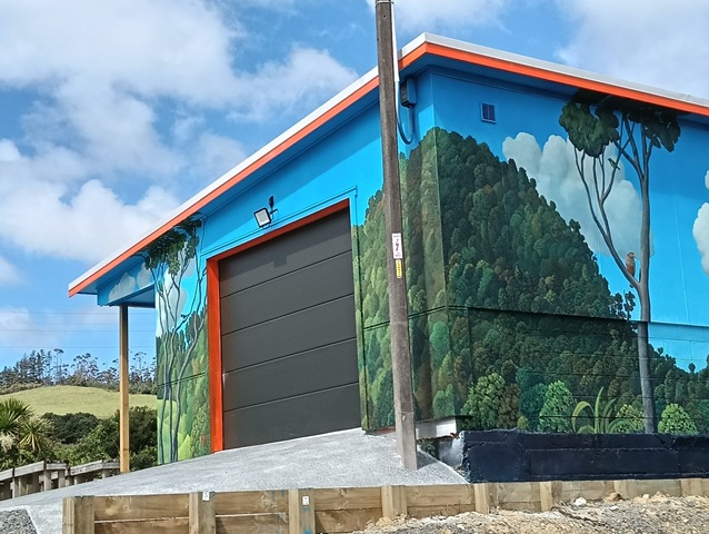 Our very talented artist and friend, Doug Ford, made a special early morning 3 hour drive up to CUE Haven from his home in Raglan. He explained his vision and approach to the current mural painting on the renovated shed and thanked Dulux for donating the lovely paints. Doug also reminisced about the fun time he had at CUE Haven in 2011 involving the community to paint the mural on the old shed and working with the Duke of Edinburghβs Hillary Award students to paint the cement water tank that was converted into a hut in 2014. He remembered getting sunburnt then as the trees around the hut were just knee high and noted how much CUE Haven had transformed as the hut is now totally under the shade of those trees.