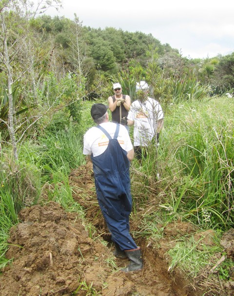 They found that a downed Ti Kouka tree was blocking a section of the stream and that a lot of vegetation and debris was also clogging the waterway and causing the backup.