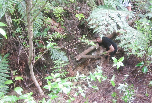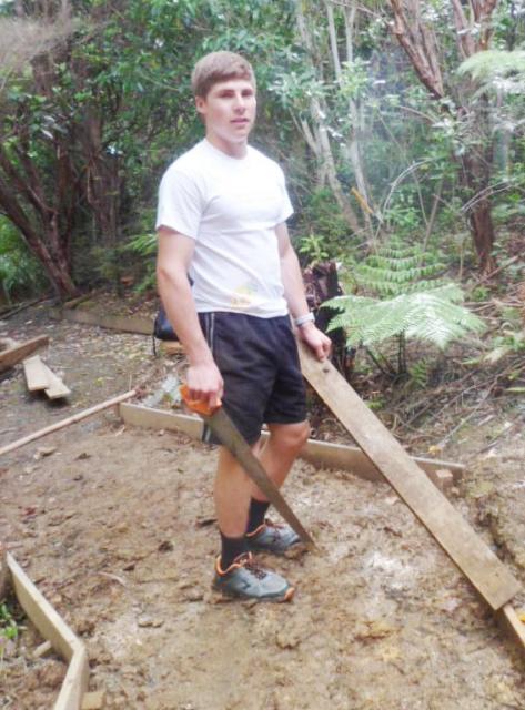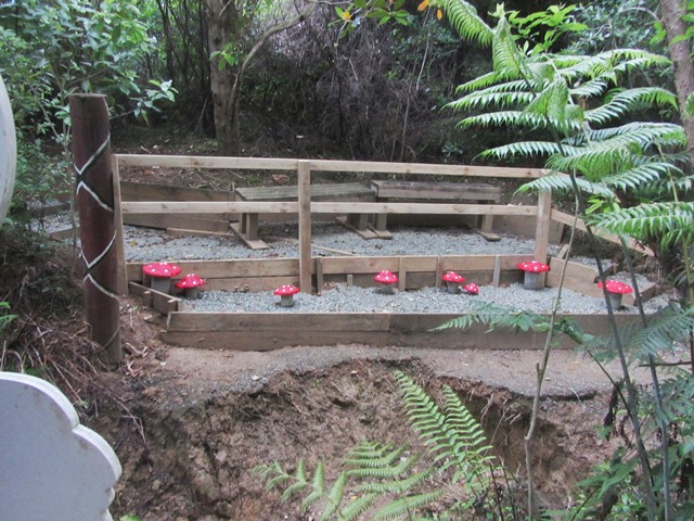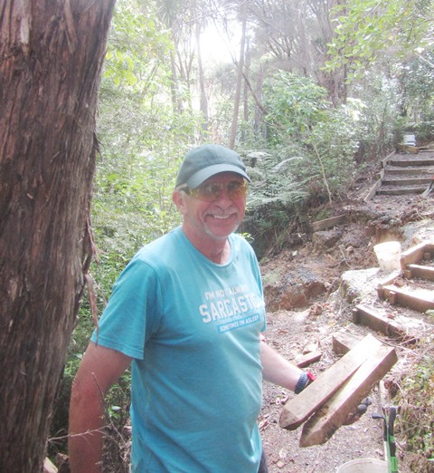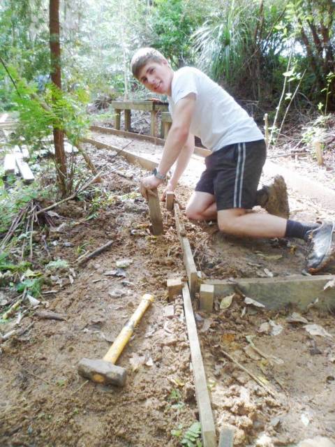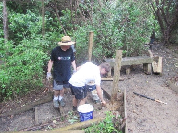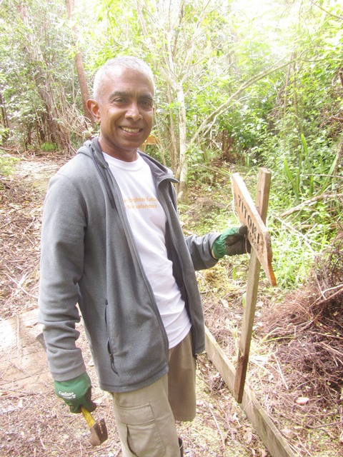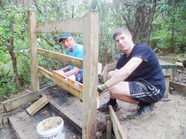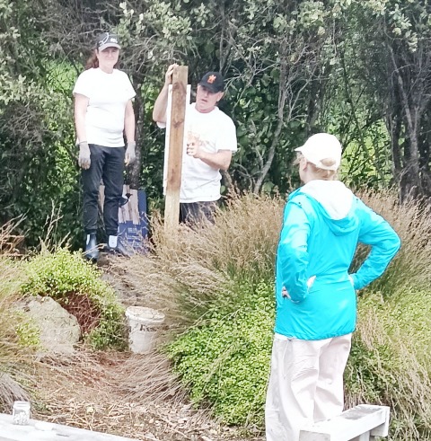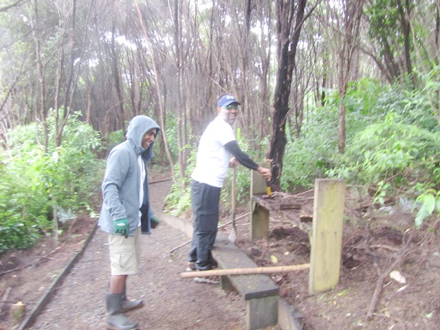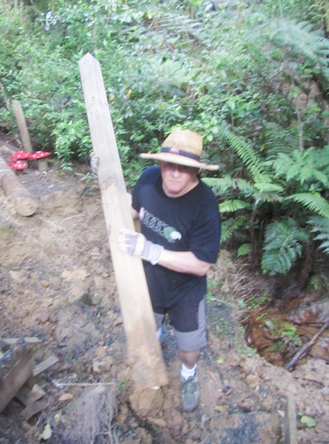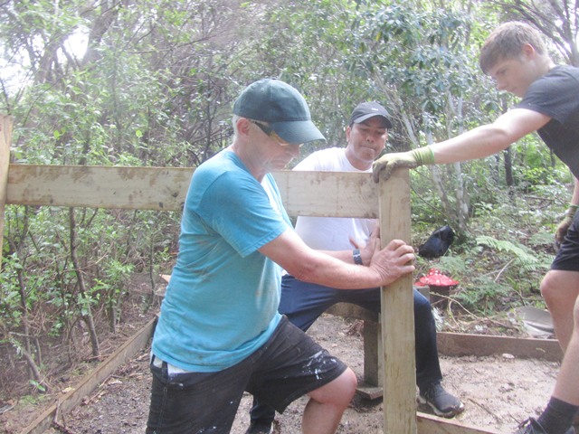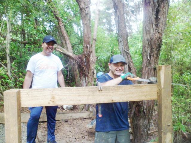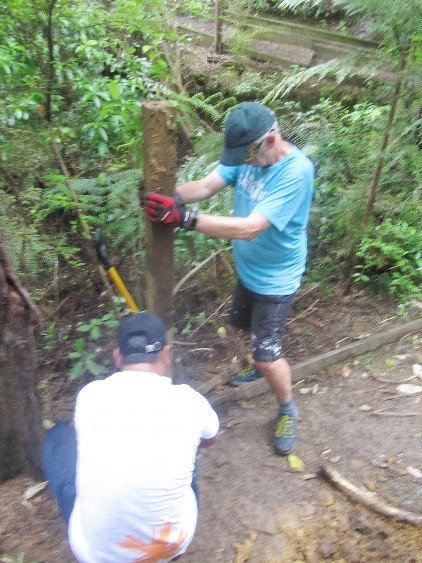 The next step was to build some fencing to direct visitors to the new track section and prevent anyone from venturing into the slip area. Using timber from the damaged sections of fencing, they built fences at each end of the new track.