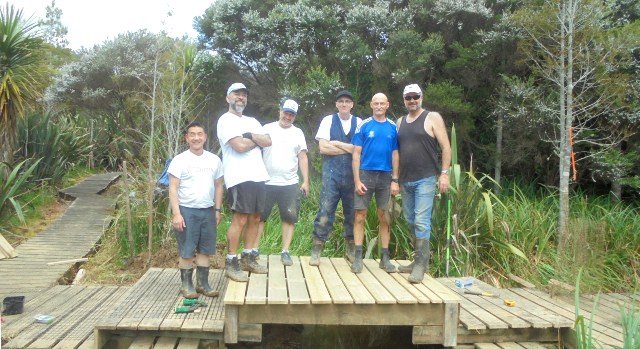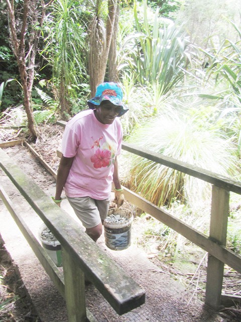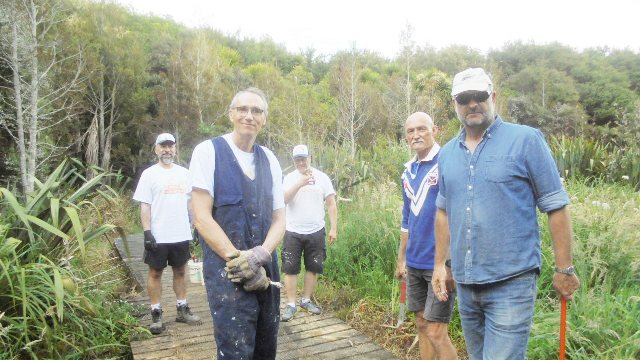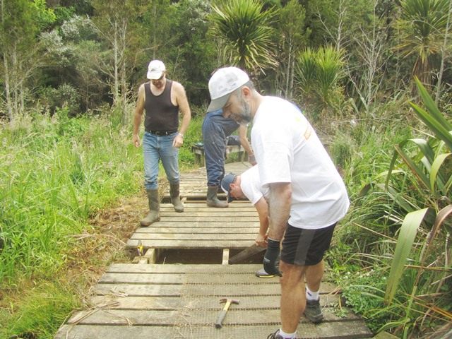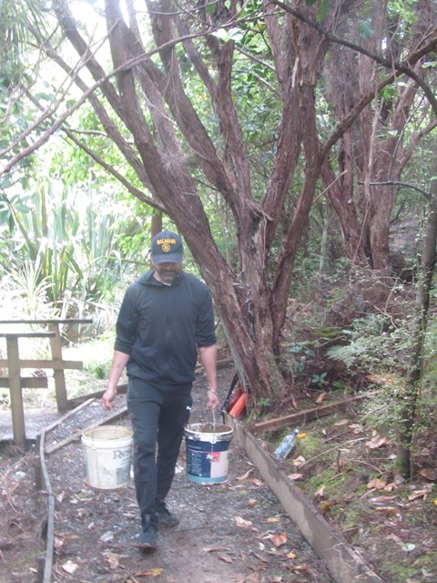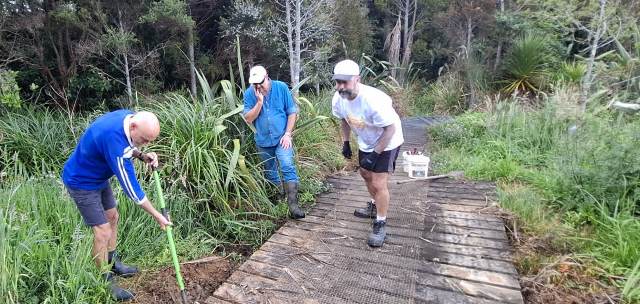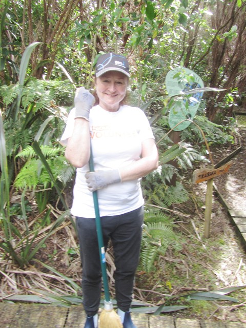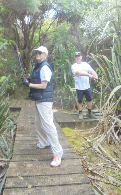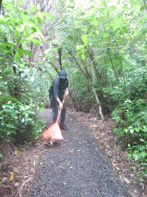 As with the boardwalk, over the winter and spring a lot of vegetation has grown over the tracks and there are also a lot of leaves and branches on the track surface. Another team worked to clear the Titoki and Taraire tracks using loppers and rakes.