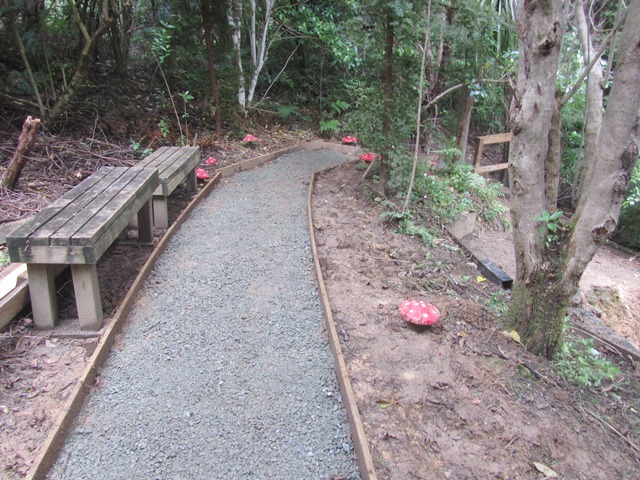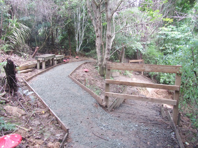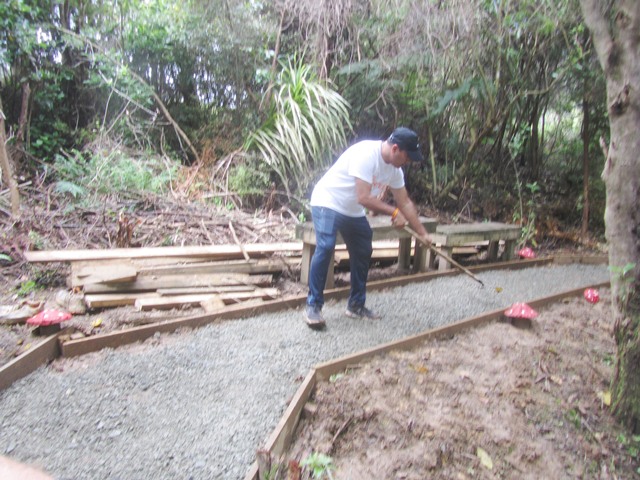 After that event, we decided that the best long term approach would be to reroute the Titoki track to higher ground away from the stream and any future issues. Two teams this spring made a start on the new track section and today’s team worked on finishing it off.