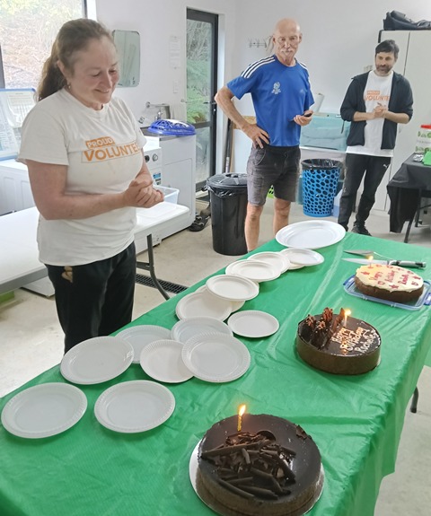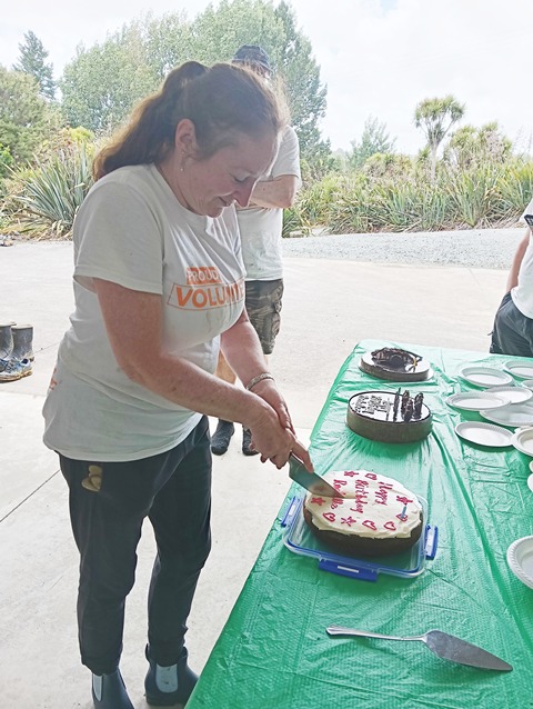 Although there was still some work to do on the wetlands bridge, we broke for a lunch break. Paul and Philip had brought cakes to celebrate Rochelle’s birthday and after lunch we had a short birthday ceremony and enjoyed the cakes as dessert.