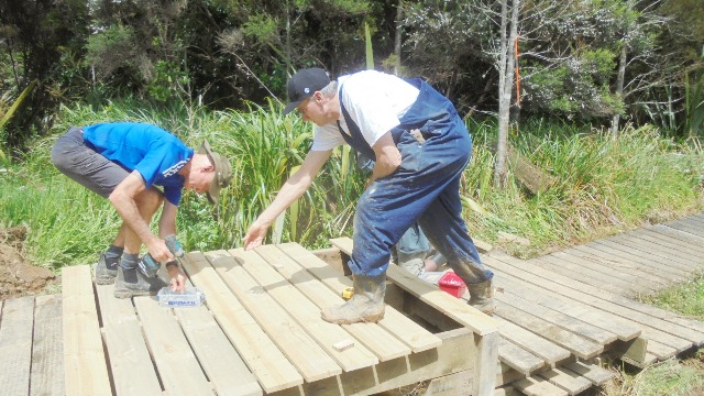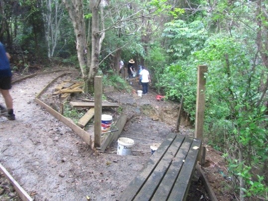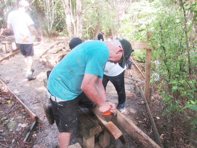 The team found a bench along the track on which the top layer of timber was rotting away leaving exposed nails. They cleared away the bad timber and removed the old nails making the bench comfortable again.