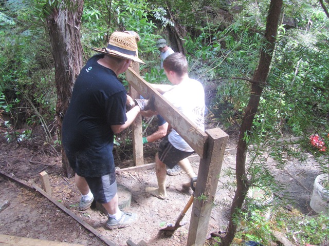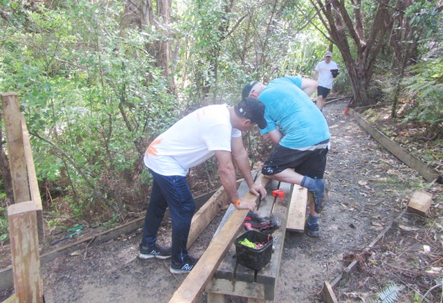 The route up to the higher track section required the installation of steps and the team worked on installing risers and side boards.