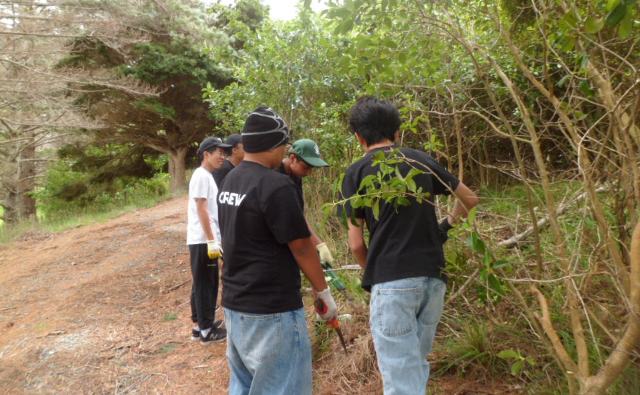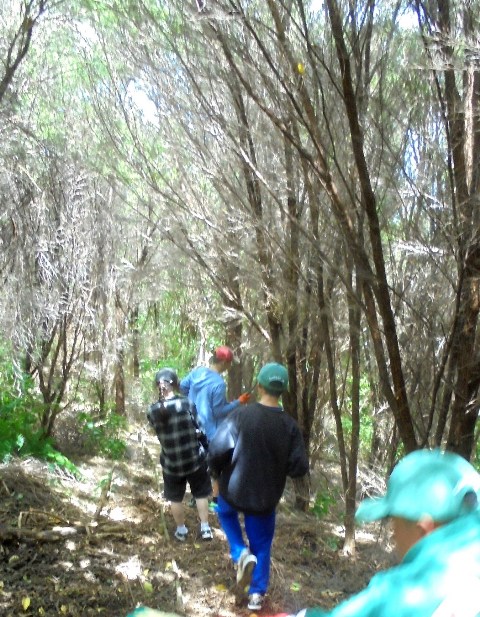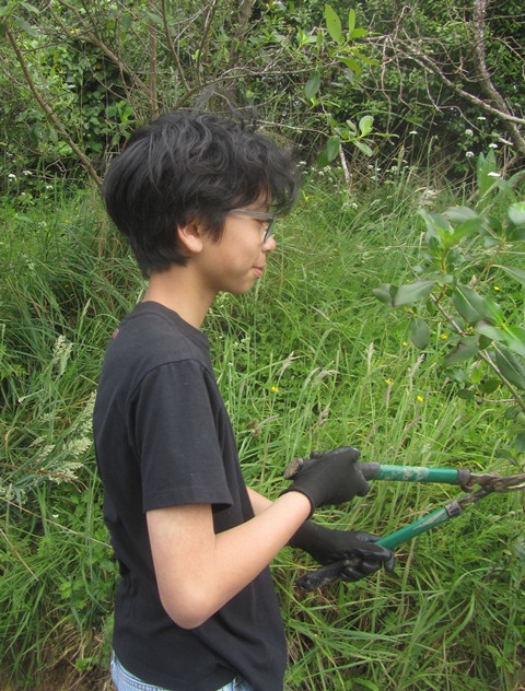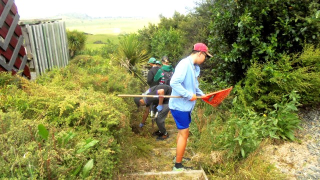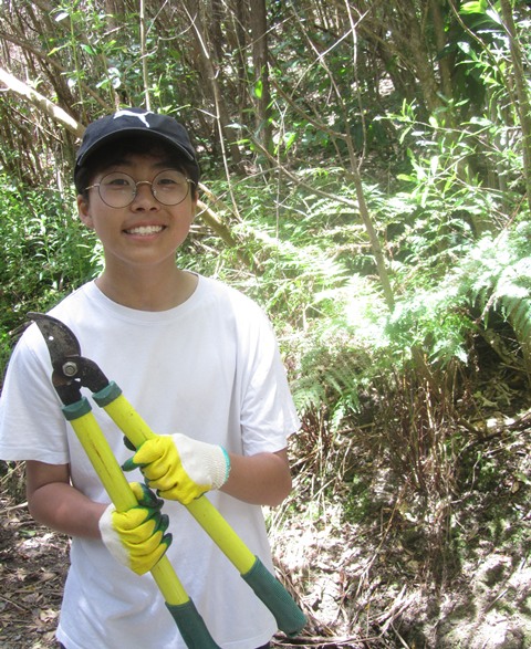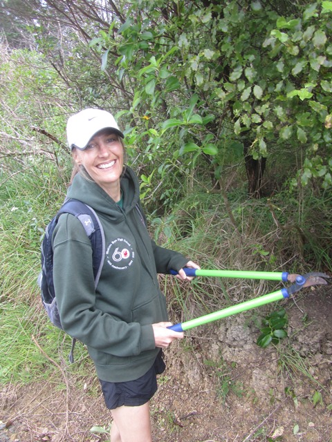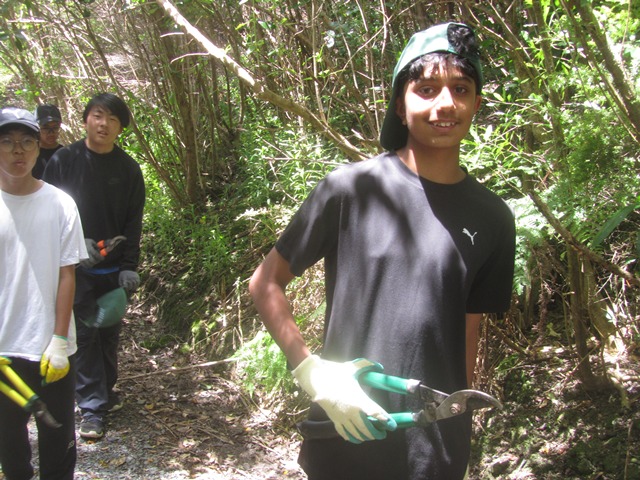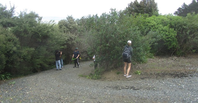 The group then broke into two teams.  Four of the students and Emily worked with Kelly and Keryn to trim along the walking tracks leading down from the viewing platform.