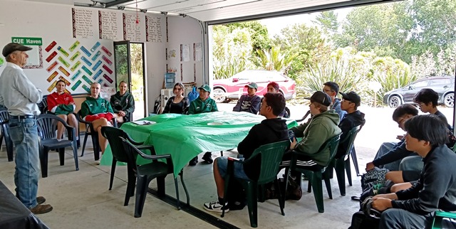 We first went up to Te Rite o Taranaki so that the students could get a look at the growing CUE Haven ngahere, Kaipara Moana and surrounding area.
