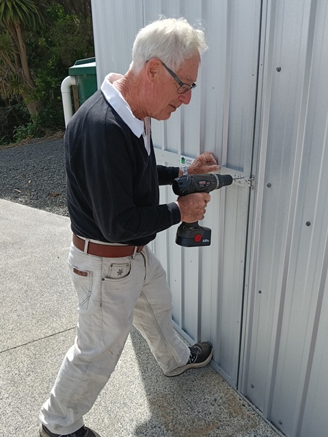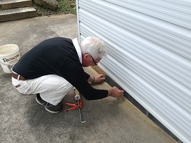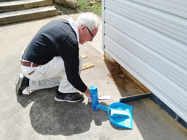 Some tiles along the bottom of the cottage had come loose as ants had built a nest behind the tiles. Alan cleared the nest and reglued and replaced the tiles.
