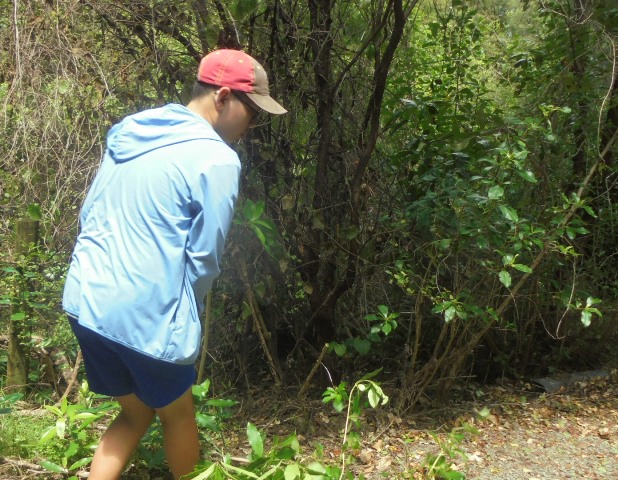 The enthusiastic team wasn’t afraid to get into the bush to find the source of the vines.