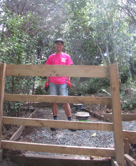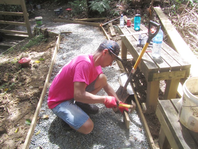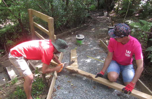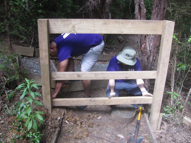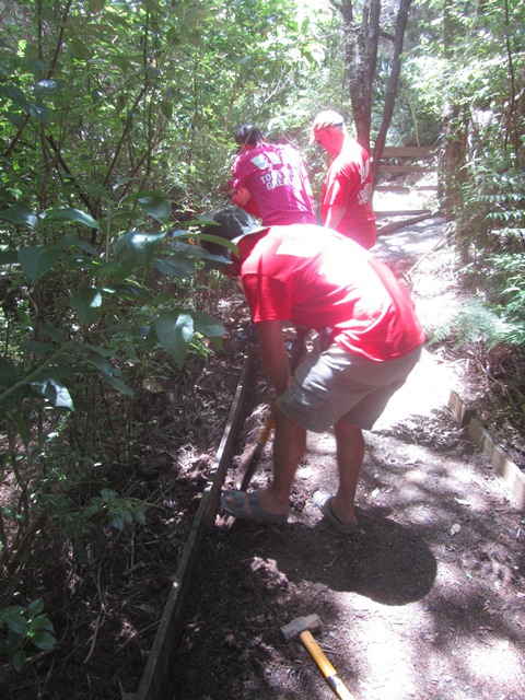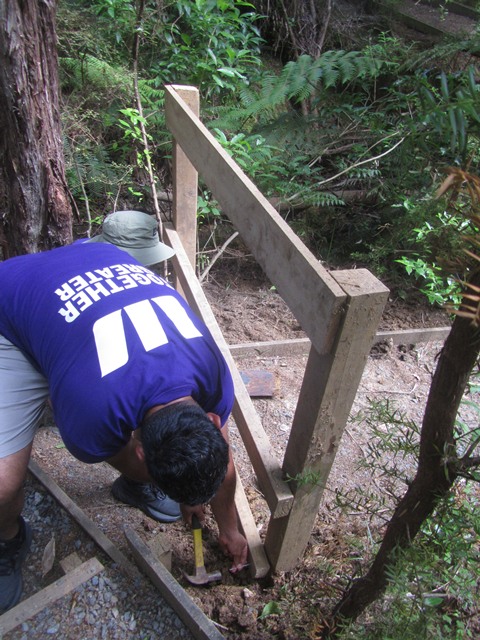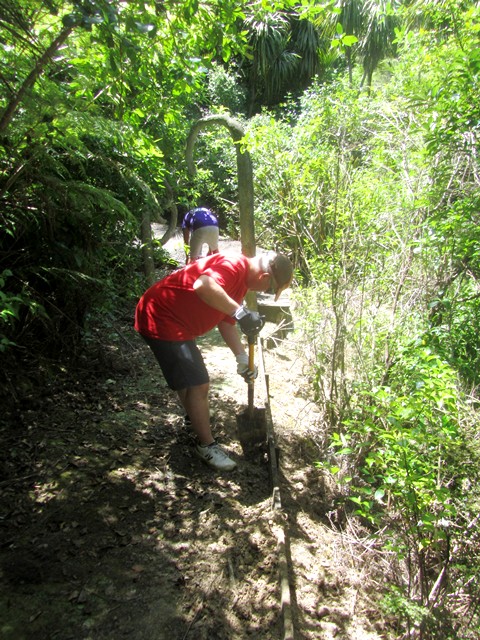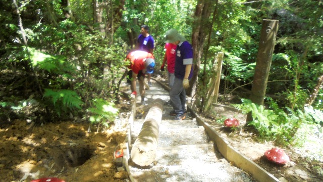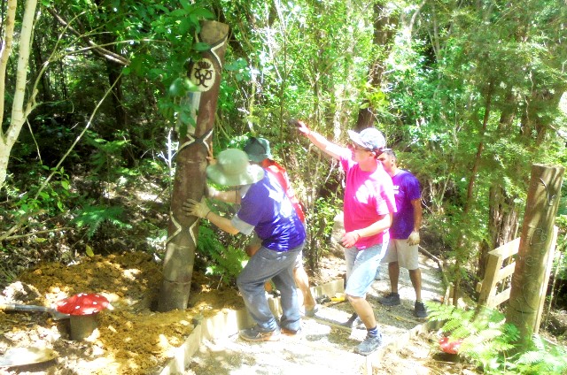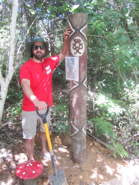 The team also undertook one last big challenge. When the initial track was built by the Duke of Edinburgh’s Hillary Award students, they had installed totem poles on each side of the bridge. When the bridge collapsed due to flooding, one of the poles came down too. The team dug a new hole and reinstalled the pole along the track.