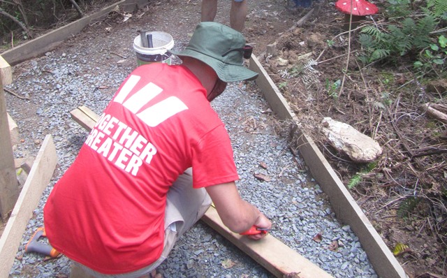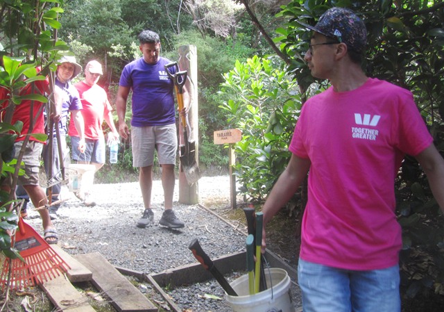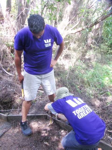Today a group of finance professionals from Westpac bank helped us with a variety of walking track maintenance projects. The team arrived first thing in the morning and included Andrew, Cydney, Geetika, Jay, Josh, Karishma, Keira, Kevin, Mitchell, Ryan, Shaun and Swayam.