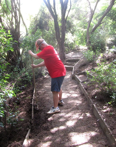 In other track sections, erosion and ground movement had made the surface uneven. The team used rakes and spades to level the ground.