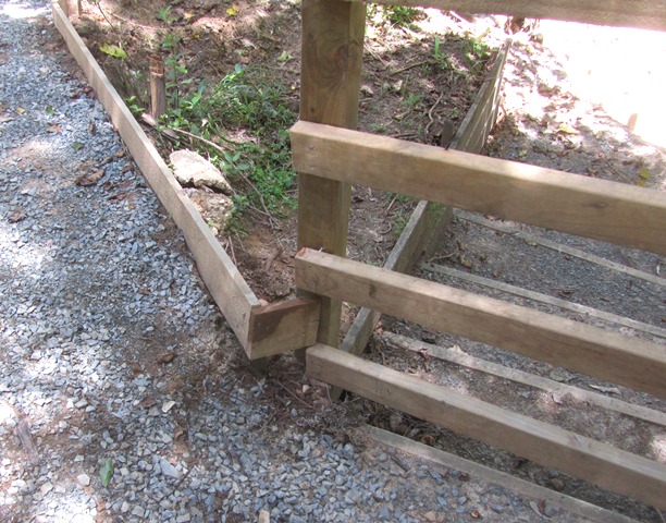In order to guide visitors away from the damaged area, we have constructed two barricades and the first task the team tackled was to install some cross beams.