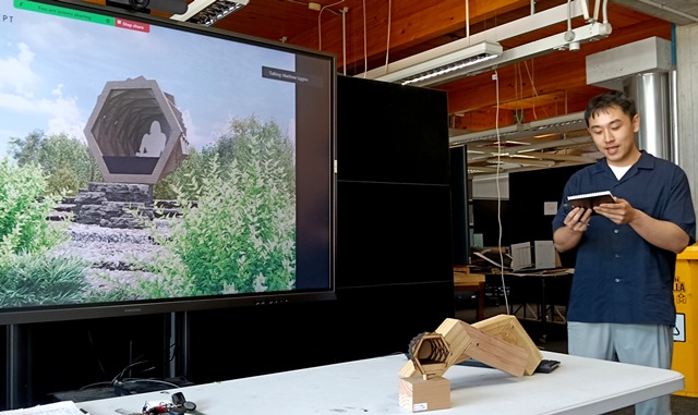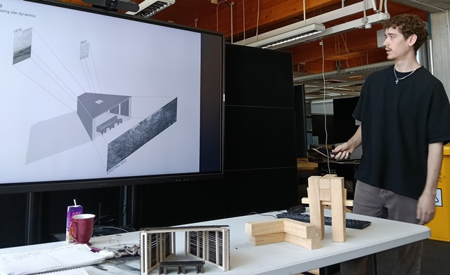 One of the students was unable to attend on the day and Matt organized his presentation at the final critique via audio link.