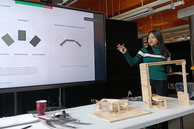 The assignment was inspired by the Paererewa project, which is aiming to install benches in various places throughout New Zealand that encourage people to sit and reflect and think longer-term.