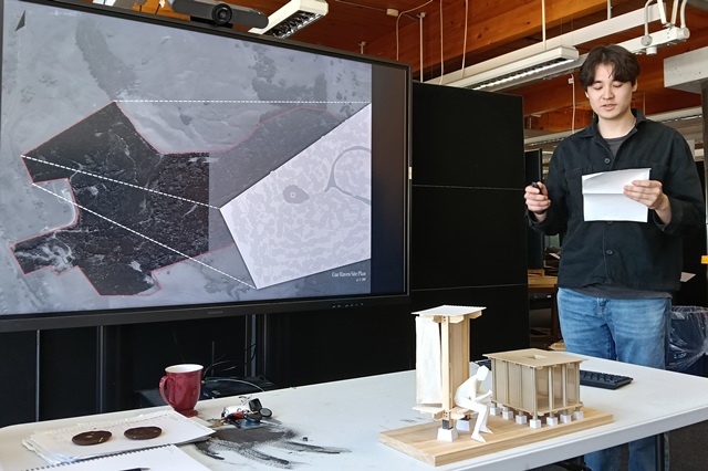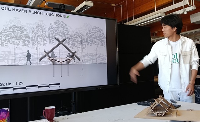 Each student explained the rationale for their design and site selection as well as describing the construction materials and techniques. Students also constructed scale models of their bench.