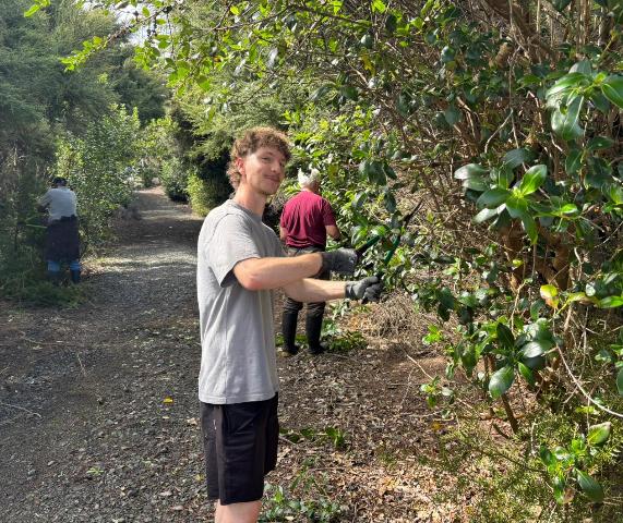 In the meantime, Janice and team worked near the cottage, trimming back flaxes growing out over the driveway and car park area.