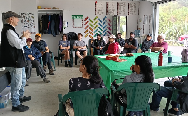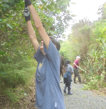 The team were delighted to spot a tree weta in a manuka tree. This was a very unusual sight as tree weta are nocturnal and it was quite likely that the weta was disturbed by the trimming from the tree cavity it was nesting in.
