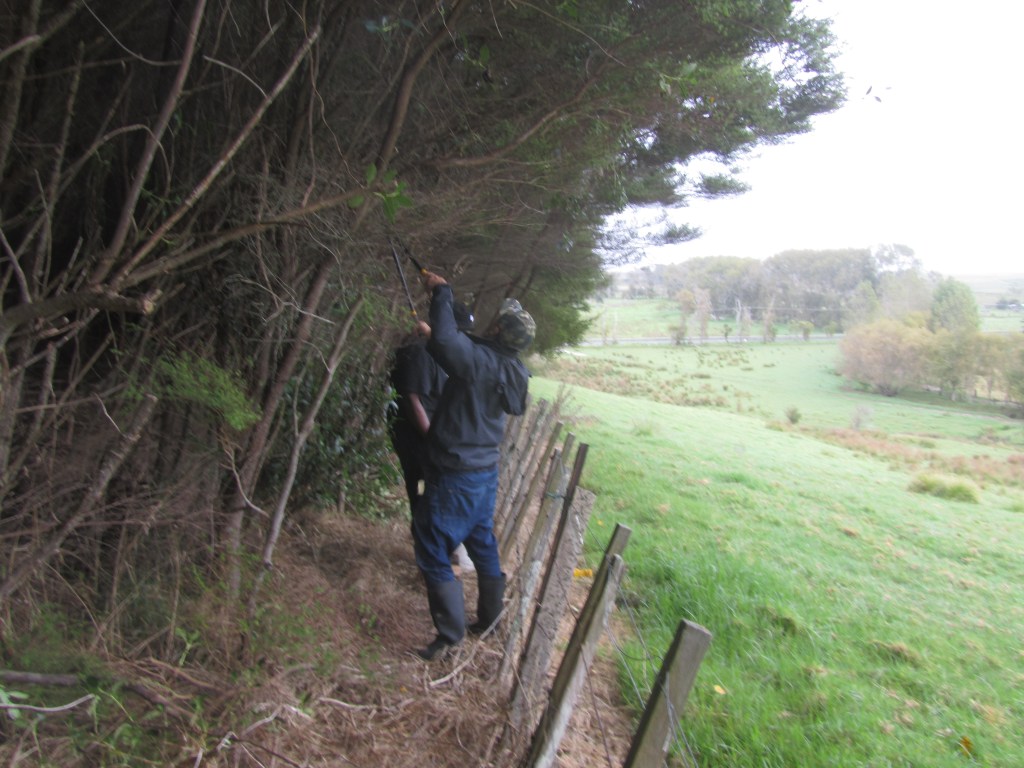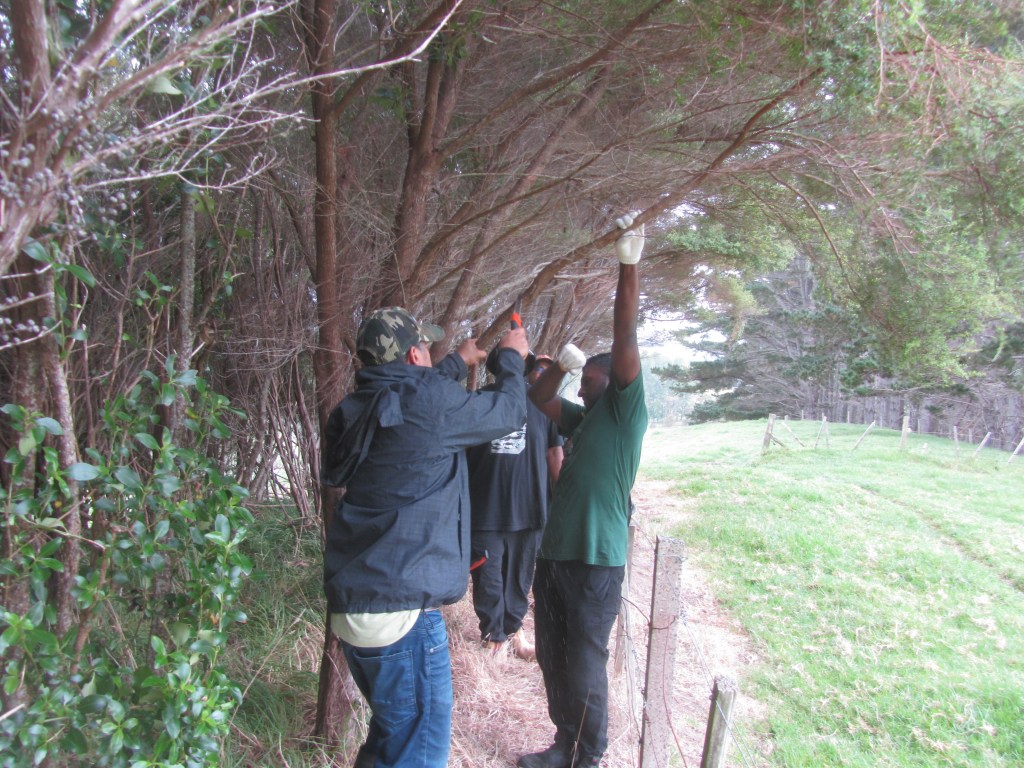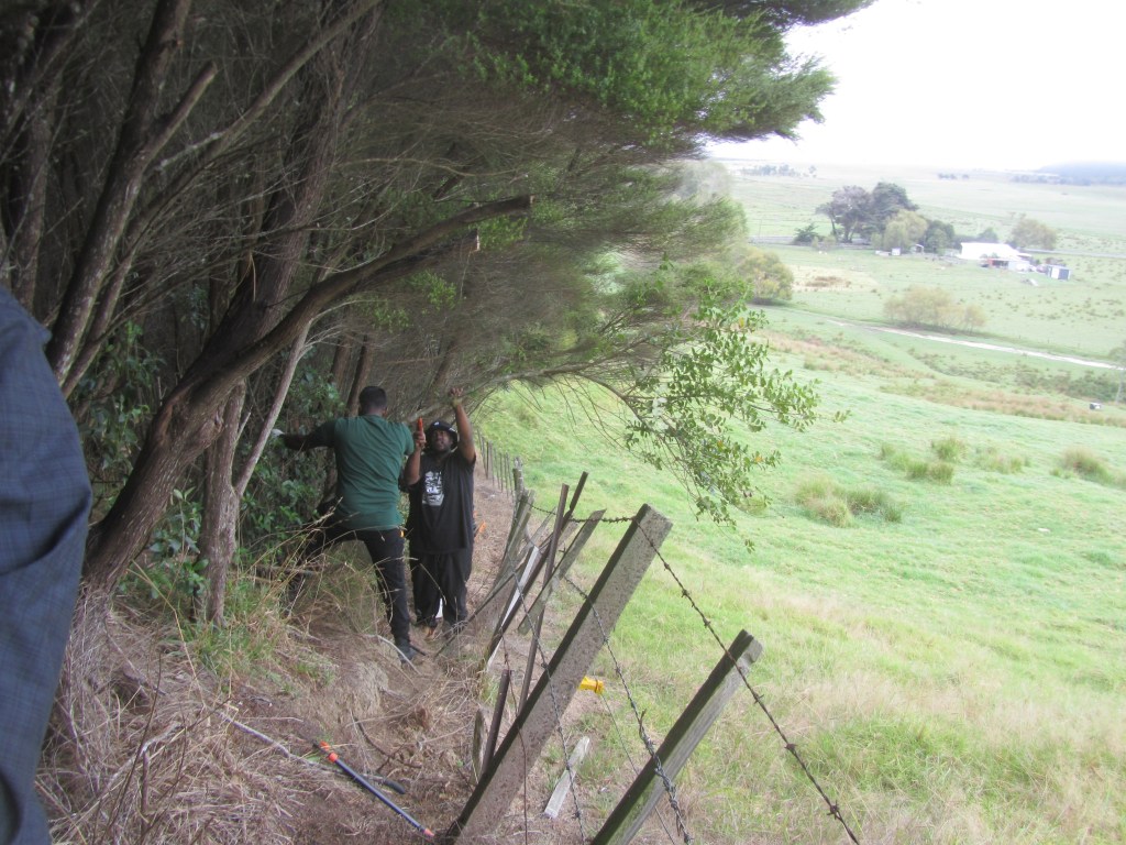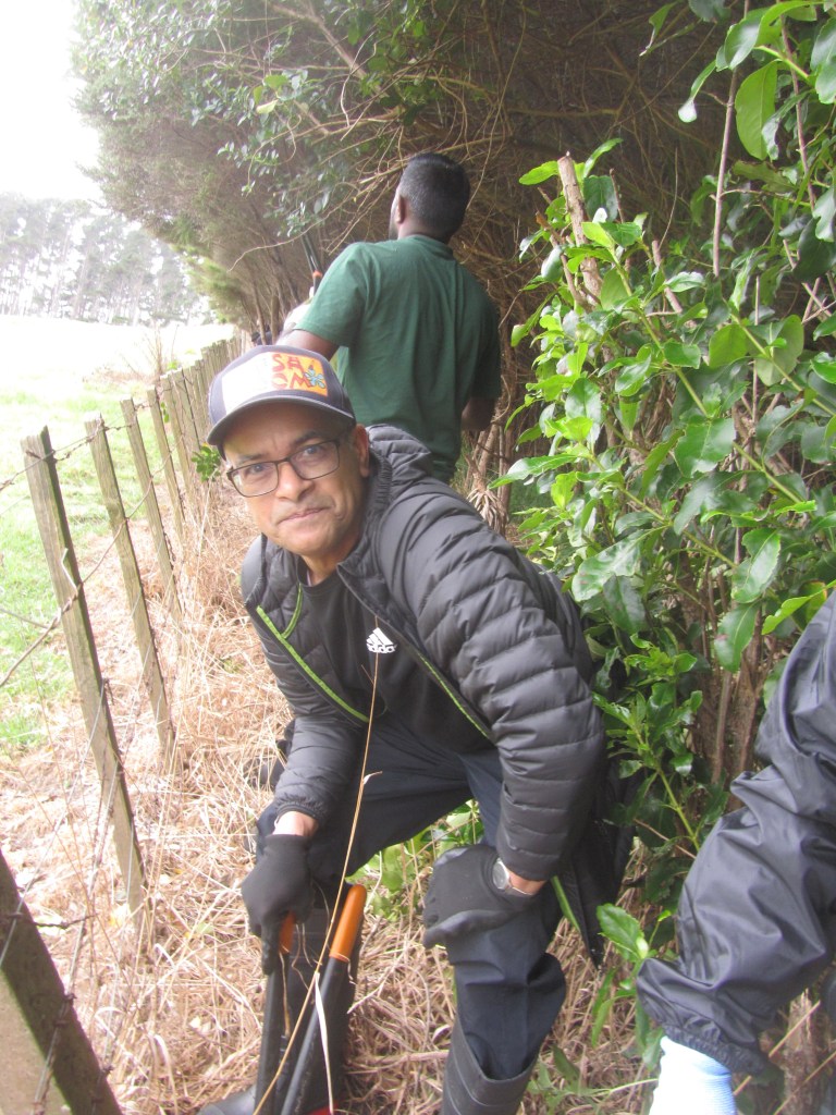 A second team worked with Thomas to trim vegetation along the boundary fence. The work involved walking the fence line and trimming back any overhanging vegetation that might be a temptation to the neighbour’s cows and to inspect the fence as well.