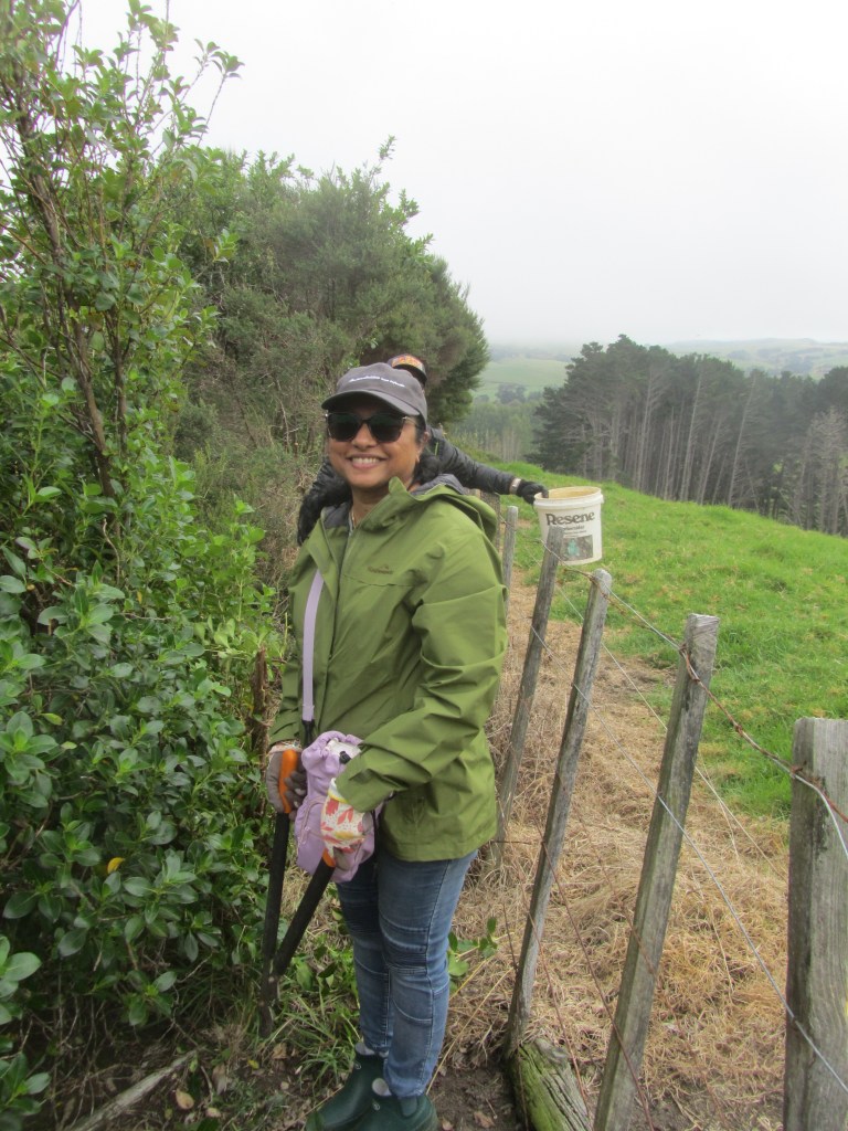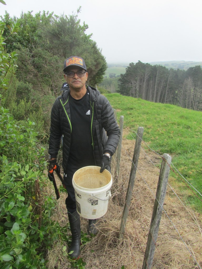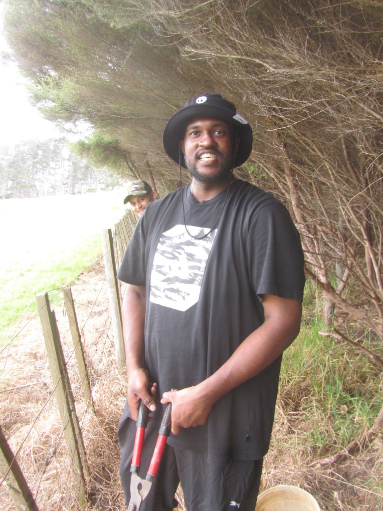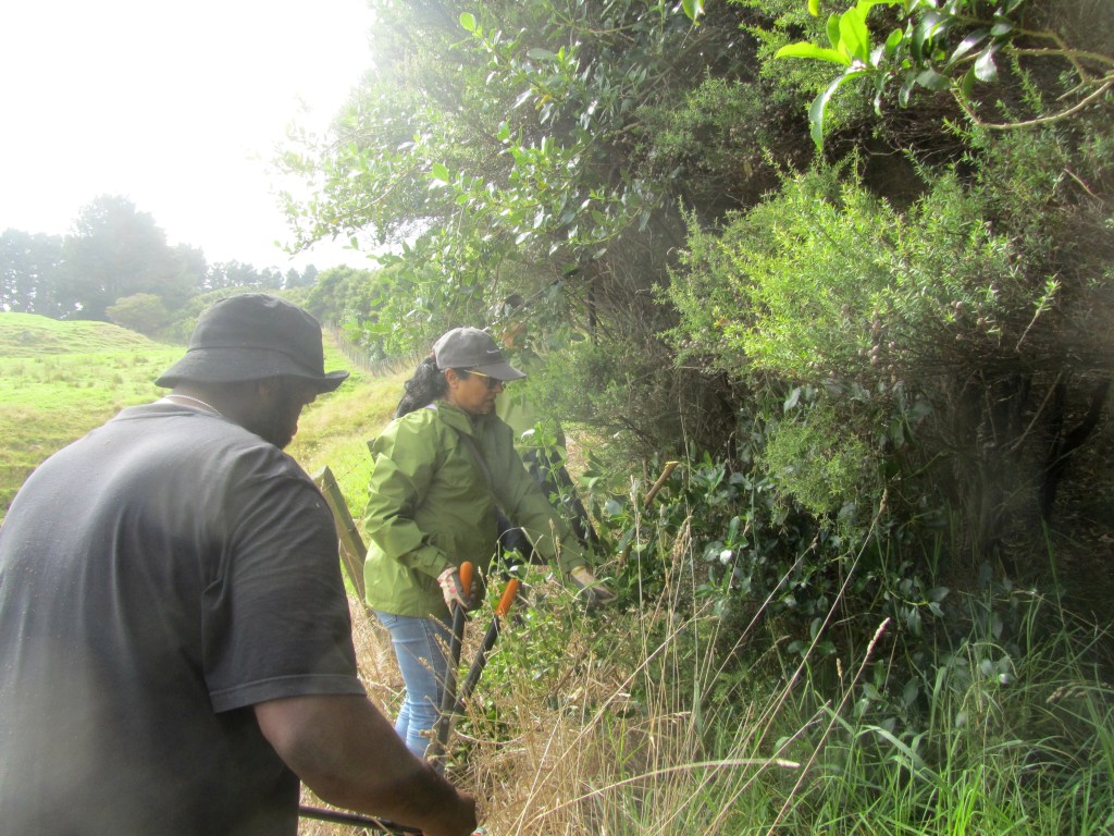 A second team worked with Thomas to trim vegetation along the boundary fence. The work involved walking the fence line and trimming back any overhanging vegetation that might be a temptation to the neighbour’s cows and to inspect the fence as well.