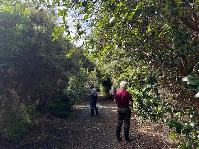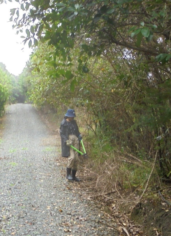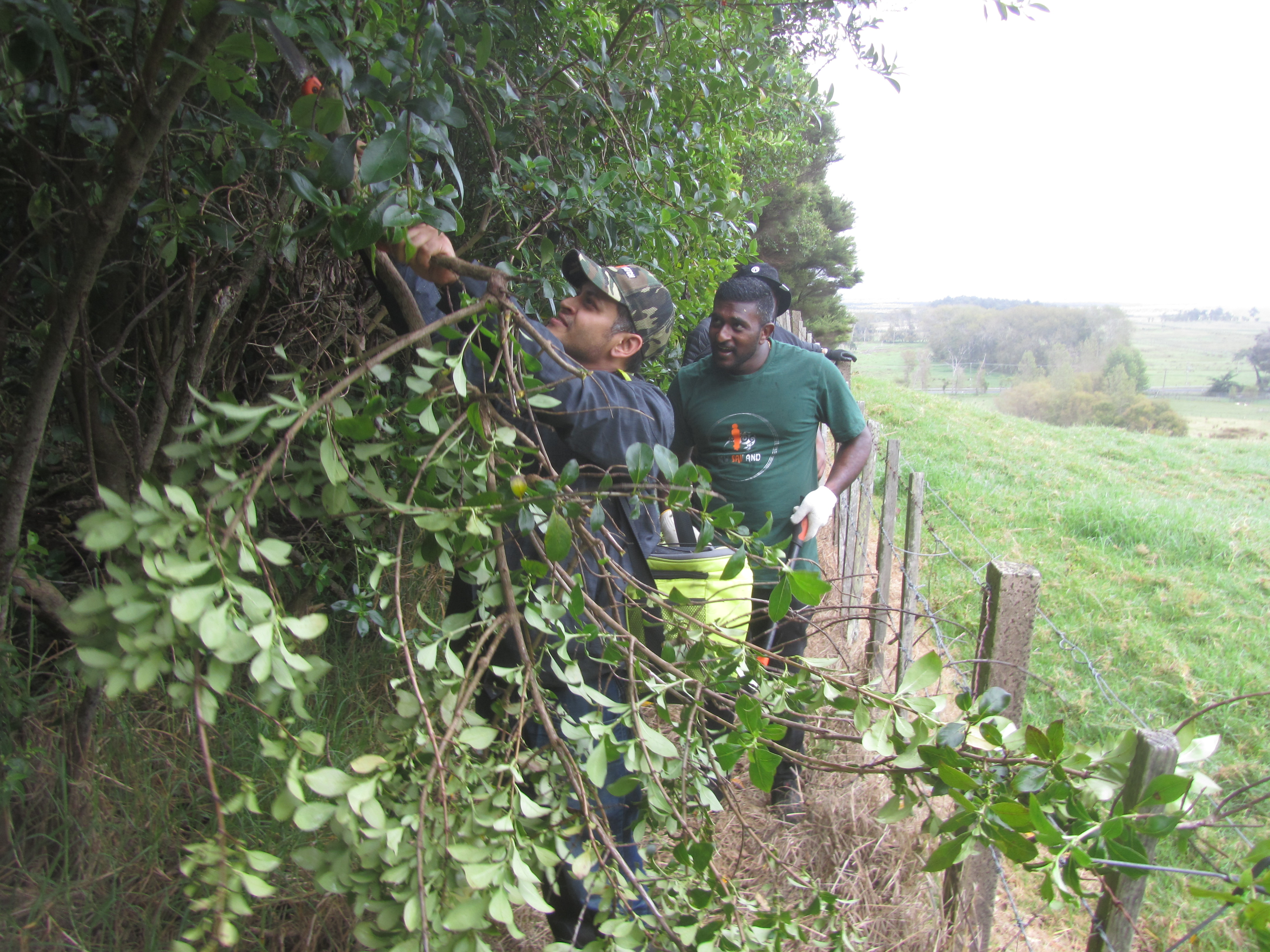 A second team worked with Thomas to trim vegetation along the boundary fence. The work involved walking the fence line and trimming back any overhanging vegetation that might be a temptation to the neighbour’s cows and to inspect the fence as well.