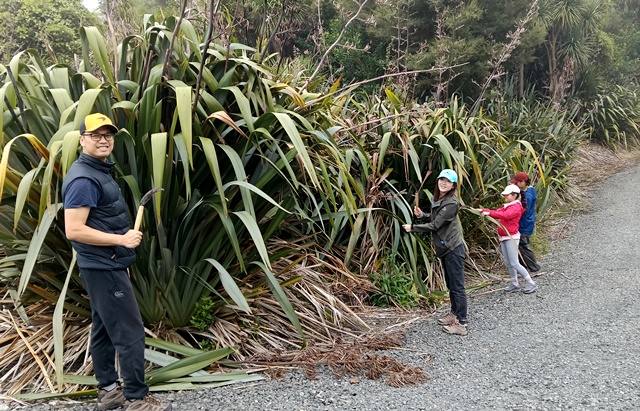 In the meantime, Janice and team worked near the cottage, trimming back flaxes growing out over the driveway and car park area.