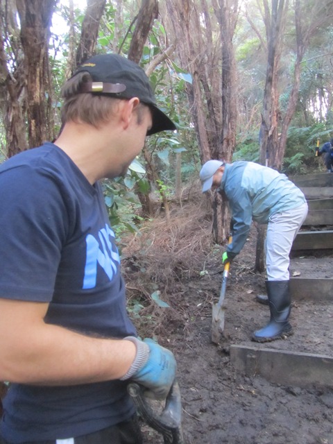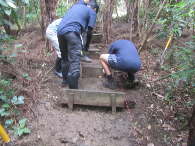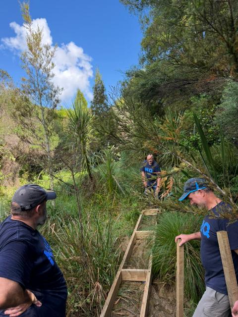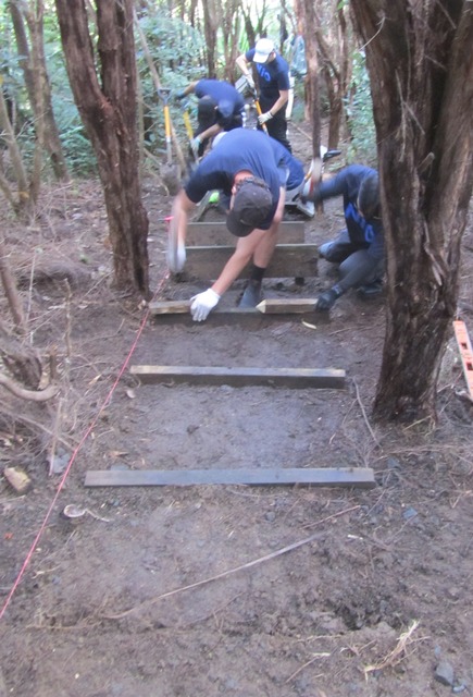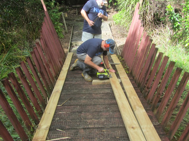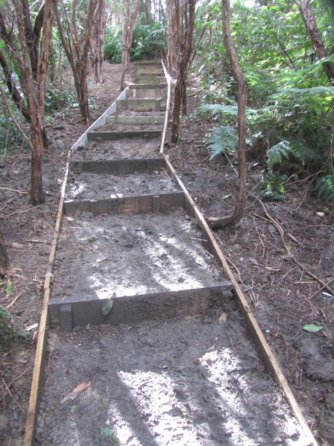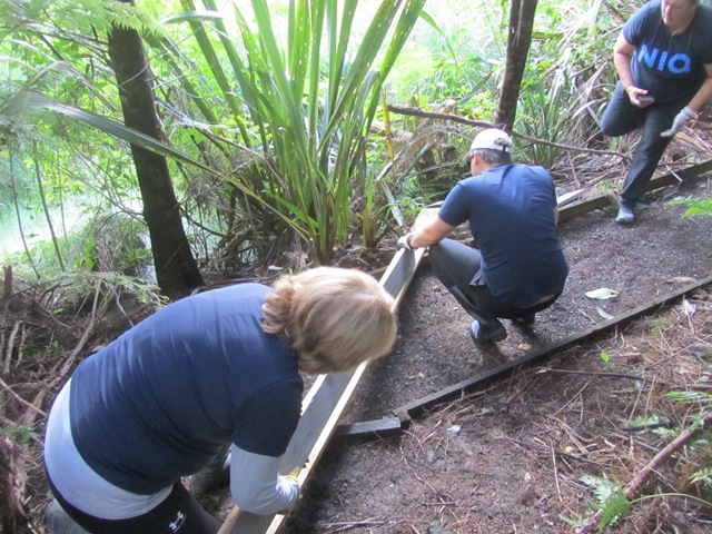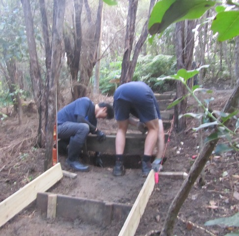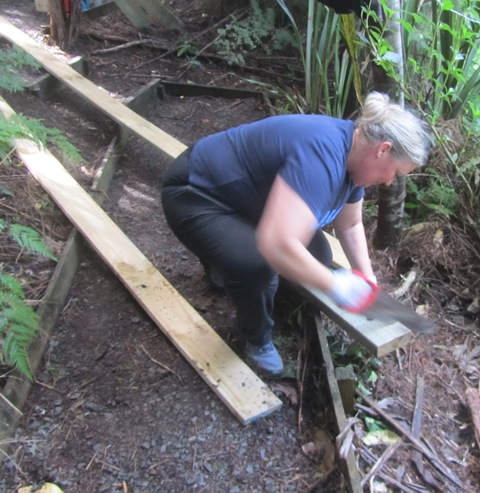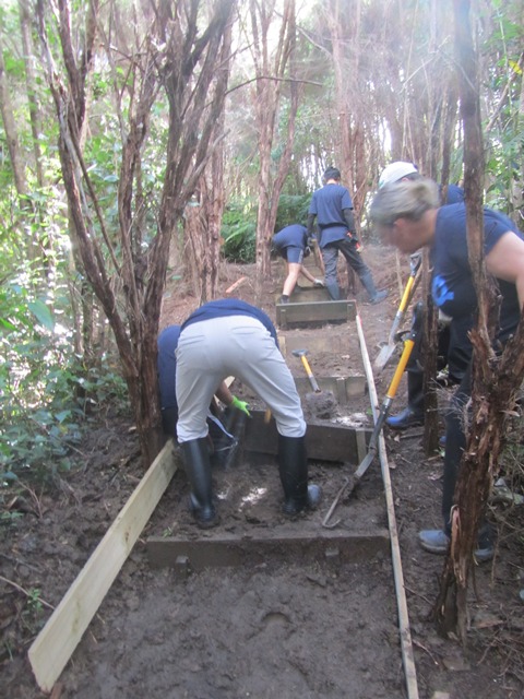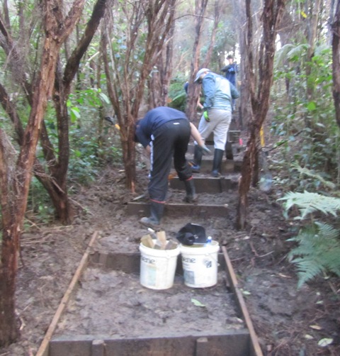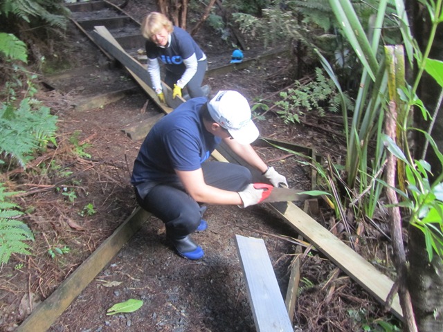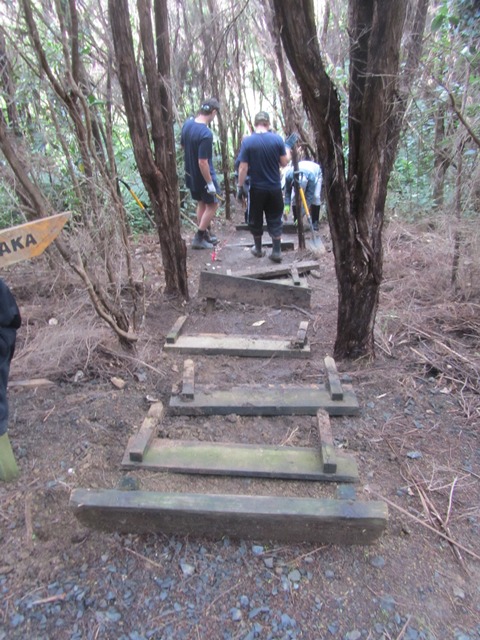 The track teams worked on installing side boards on a set of steps which connect the Tirairaka and Tui tracks.