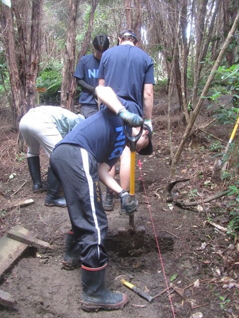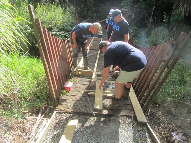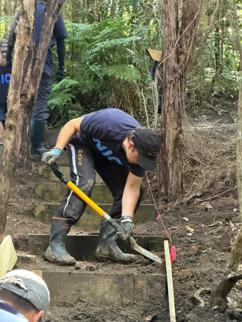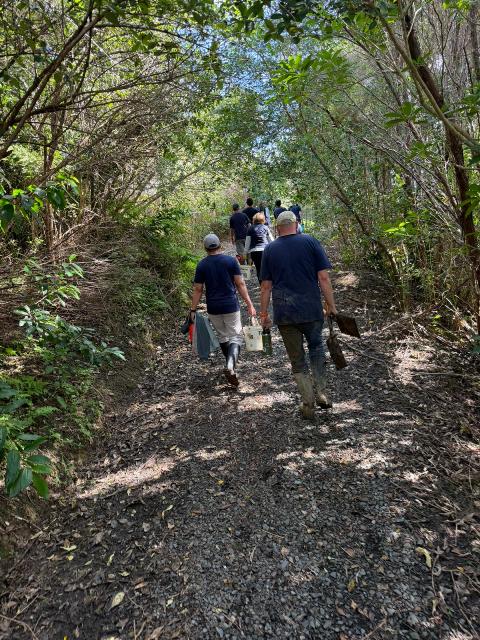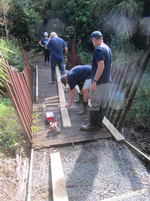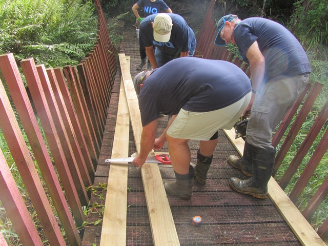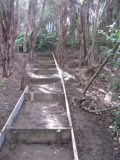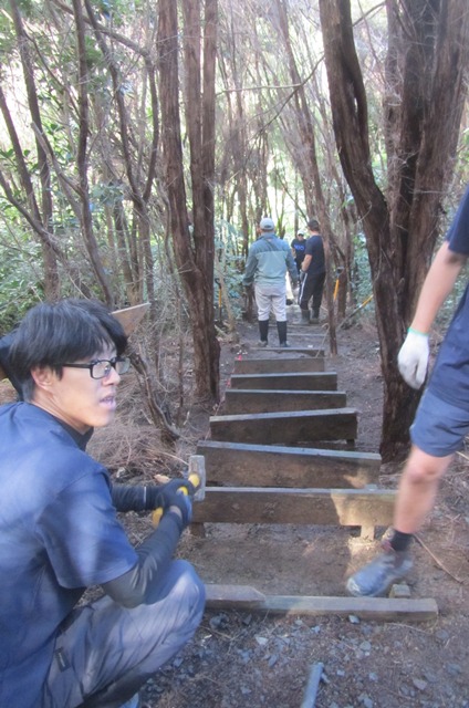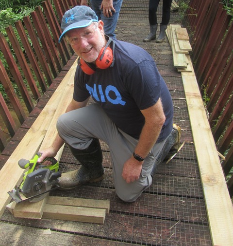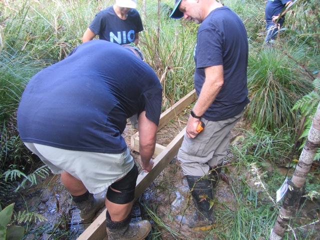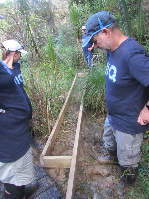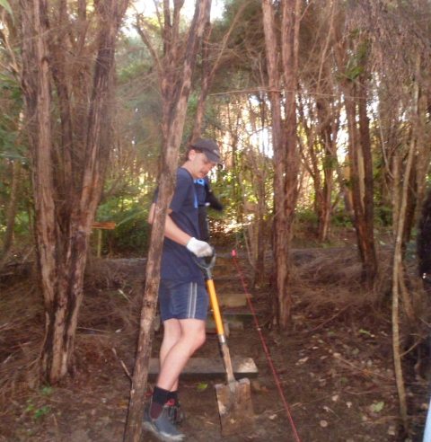 The track teams worked on installing side boards on a set of steps which connect the Tirairaka and Tui tracks.