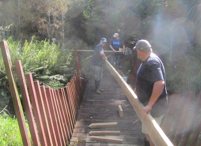 The angled section where the new boardwalk connects to the old was a challenge as each board had to be carefully measured and cut.