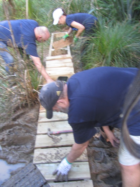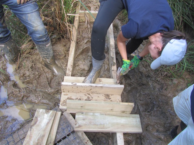 The second team tackled the messy challenge of extending the boardwalk in the wetlands.